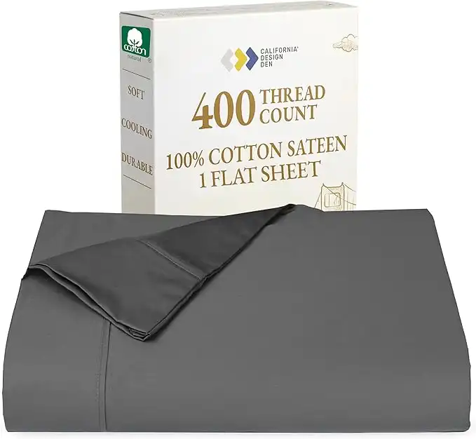 amazon.aeCalifornia Design Den Twin Size Flat Sheet, Soft 100% Cotton Sheet, 400 Thread Count Sateen, Cooling & Breathable Bed Sheets, Grey Top Sheet, Twin Sheets, Single Twin Flat Sheet Only (Grey)