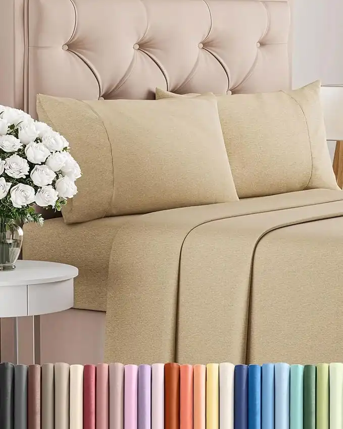 California King Size 4 Piece Bedding Sheet Set - Breathable & Cooling - Hotel Luxury Bed Sheets - Easy Fit - Soft, Wrinkle Free & Comfy Tan Heathered Oeko-Tex Bedding Sheets - Deep Pockets Sheet Set