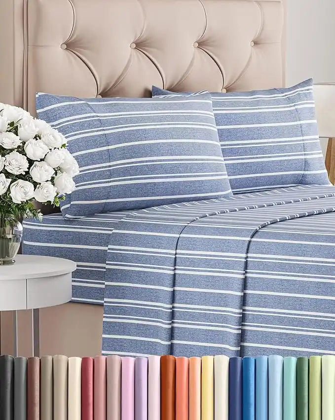 amazon.aeCalifornia King Size 4 Piece Bedding Sheet Set - Breathable & Cooling - Hotel Luxury Bed Sheets - Easy Fit - Soft, Wrinkle Free & Comfy Blue Stripes Oeko-Tex Bedding Sheets - Deep Pockets Sheet Set