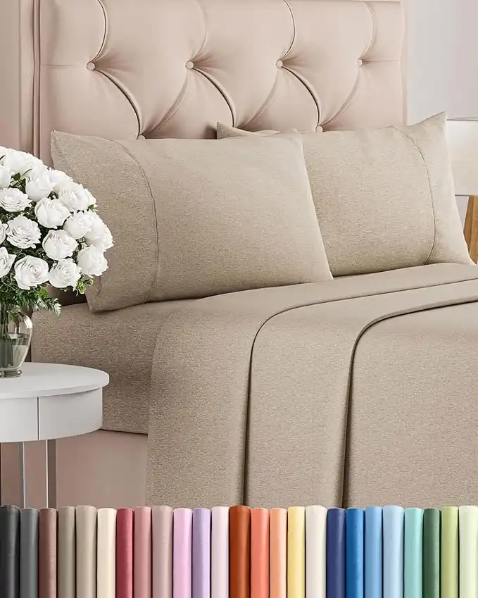 amazon.aeCalifornia King Size 4 Piece Bedding Sheet Set - Breathable & Cooling - Hotel Luxury Bed Sheets Set - Easy Fit - Soft, Wrinkle Free & Comfy Beige Heathered Oeko-Tex Bedding Sheets - Deep Pockets Set