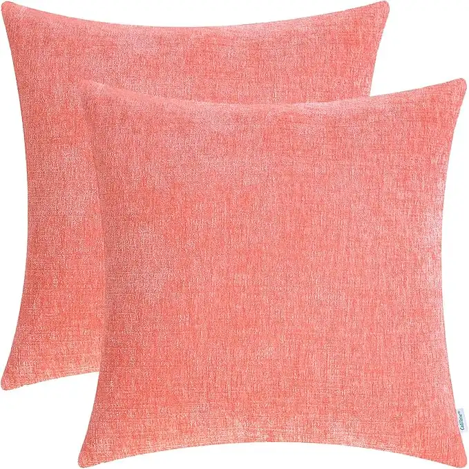 CaliTime Pack of 2 Cozy Throw Pillow Covers Cases for Couch Sofa Home Decoration Solid Dyed Soft Chenille 12 X 12 Inches Living Coral — Price History & Tracker | DeserTracker
