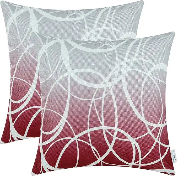 CaliTime Pack of 2 Soft Canvas Throw Pillow Covers Cases for Couch Sofa Home Decor Modern Gradient Ombre Circles Rings Both Sides 18 X 18 Inches Gray to Burgundy — Price History & Tracker | DeserTracker