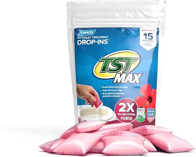 Camco TST MAX Camper/RV Toilet Treatment Drop-INs - Control Unwanted Odors & Break Down Waste and Tissue - Safe Septic Tank Treatment - Hibiscus Breeze Scent, 15-Pack (41600) — Price History & Tracker | DeserTracker