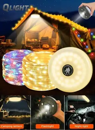 noon.comCamping String Lights, 4 in 1 Outdoor Camping Lantern with 8 Lighting Modes(32.8Ft), Quick 30s Recovery, Waterproof, Type-C Fast Charging, Portable Camping Lights for Camping/Yard/Hiking
