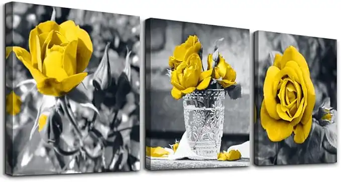 amazon.aeCanvas Wall Art For Bedroom Wall Decor For Kitchen Living Room Decor Girls Room Wall Decorations Black And White Wall Pictures Artwork Yellow Rose Flowers Canvas Prints Bathroom Home Decor 3 Piece