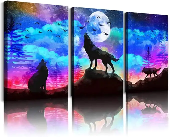 amazon.aeCanvas Wall Art For Living Room Large Size Wall Decor For Bedroom Office Decor Artwork Modern 3 Pieces Framed Canvas Art Prints Ready to Hang Wolf Pictures Blue Sky Auroral Painting Home Decoration