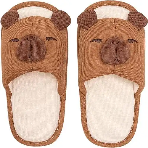 amazon.comCapybara Slippers for Women and Men, Indoor Cartoon Animal House Shoes, Soft Cotton Linen Warm Winter Home Slippers, Non Slip Cozy Footwear for Bedroom Living Room Dorm, Size 38-39, Brown