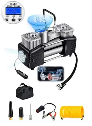 noon.comCar Tire Inflator Portable Digital Air Compressor,150 PSI Air Pump with Heavy Duty Double 30mm Cylinder/Auto Stop/LED Light/Metal Handle,Pressure Gauge Cycle Tyre Inflator - Professional for SUV, Off-Road, Trucks