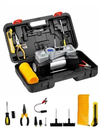 noon.comCar Tire Inflator Portable Digital Air Compressor,DC12V Cord Air Pump with Heavy Duty Double 30mm Cylinder/Auto Stop/LED Light/Metal Handle/Toolboxes,Pressure Gauge Cycle Tyre Inflator - Professional for SUV, Off-Road, Trucks
