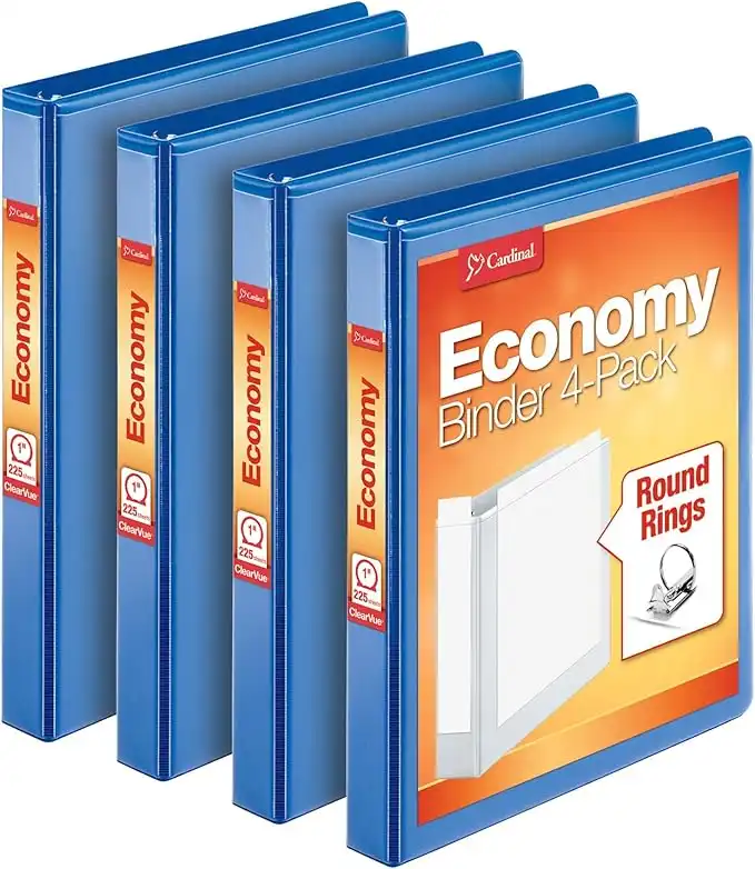 Cardinal Economy 3 Ring Binder, 1 Inch, Presentation View, Blue, Holds 225 Sheets, Nonstick, PVC Free, 4 Pack of Binders (79511) — Price History & Tracker | DeserTracker