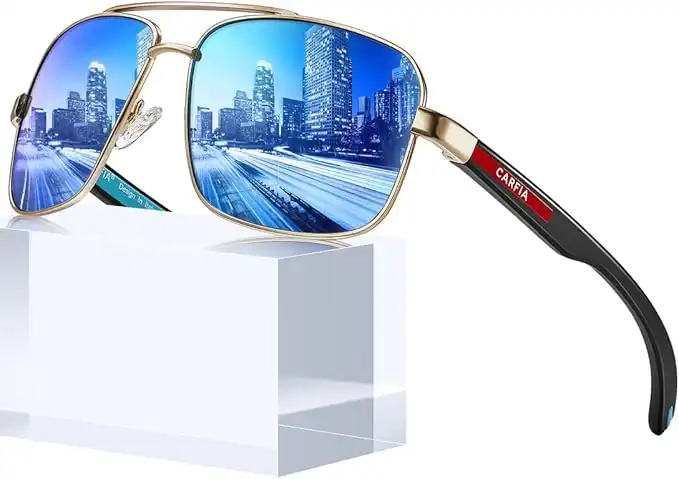 Carfia Square Polarized Sunglasses for Men Trendy Metal Frame Vintage Retro Pilot Shades Driving Sun glasses CA5393, 5. Gold Frame Blue Mirror Lens, One size — Price History & Tracker | DeserTracker