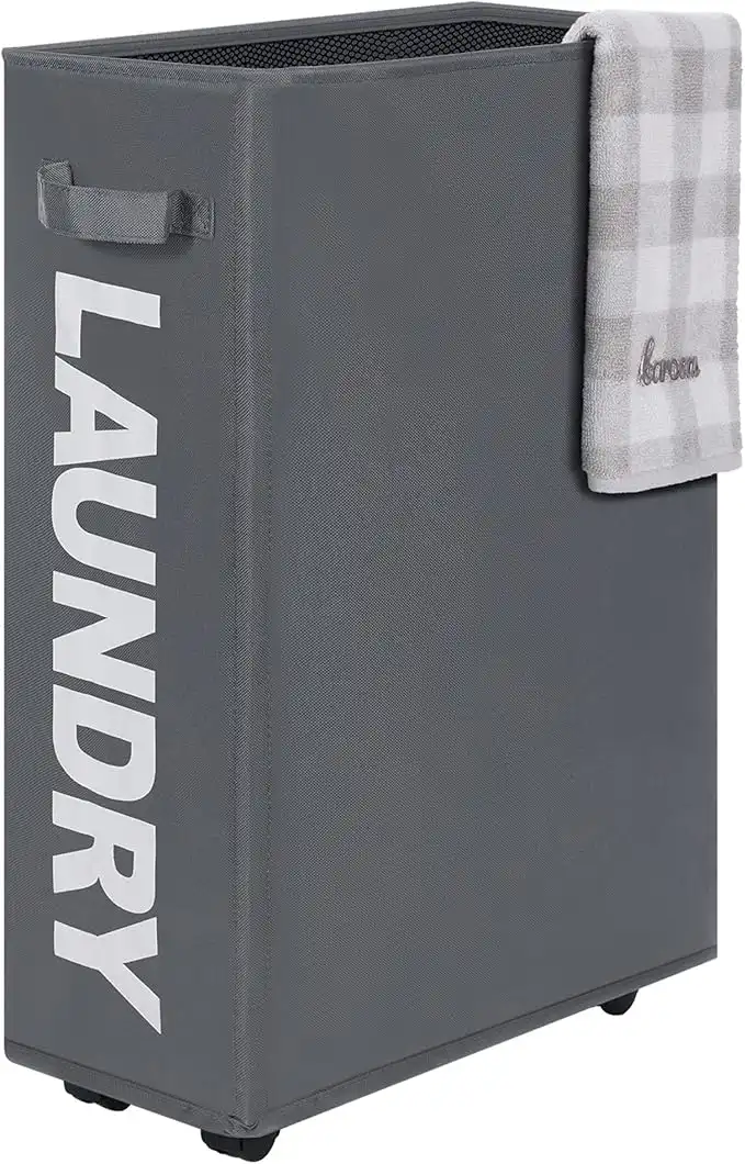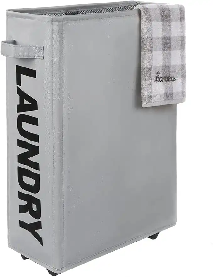 Caroeas 22" Rolling Slim Laundry Baskets with Stand Foldable Waterproof Hamper and Organizer on Wheels Tall Thin Dirty Laundry Hamper Baskets Home Corner Basket