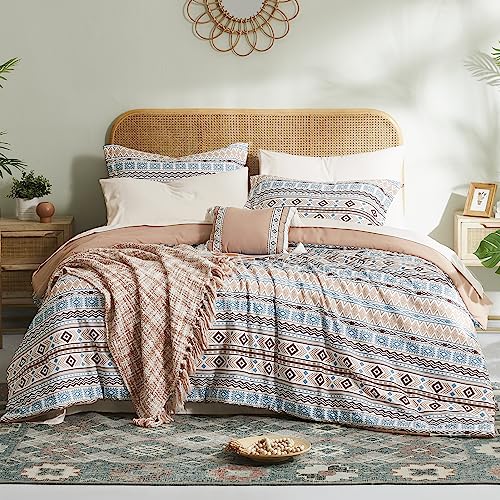 CASAAGUSTO King Comforter Set, 8 Pieces Terrcotta Boho Comforter Set, Microfiber Cozy Bohomian Bedding Set with Decor Pillow, Lightweight Breathable for All Seasons