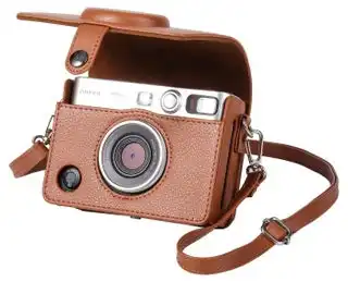 Case for Fuji Mini EVO,Camera Case Compatible for Fuji Mini EVO Camera with Adjustable Shoulder Strap in Brown Lychee Texture Horizontal Style