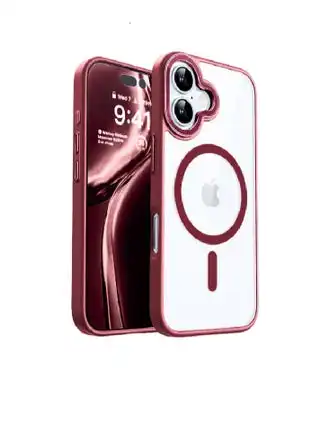 Case for I Phone 16 Clear transparent Magnetic / Cover with dark red color edges, Wireless Charging, Scratch & Yellowing Resistant, Drop Protection (TPU/ Silicon)
