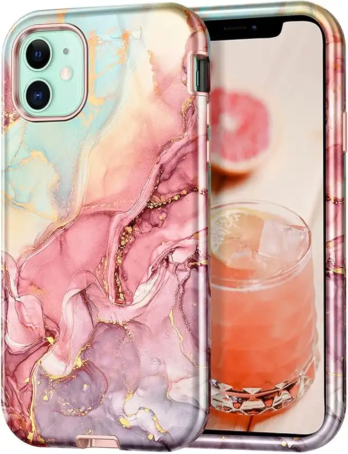 CASEFIV Compatible with iPhone 11 Case,Marble Pattern 3 in 1 Heavy Duty Shockproof Full Body Rugged Hard PC+Soft Silicone Drop Protective Women Girls Cover for iPhone 11 6.1 inch, Rose Gold — Price History & Tracker | DeserTracker