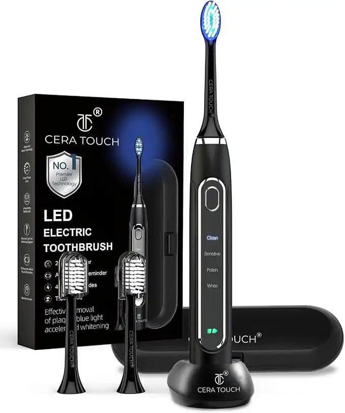 CERA TOUCH 6 Blue LED Whitening Electric Toothbrush | UAE MoIAT-Compliant Quality | 4 Modes, Smart Timer & Memory Function | 2 Heads, Wireless Charging| IPX7 Waterproof | Travel Case | 1-Year Warranty