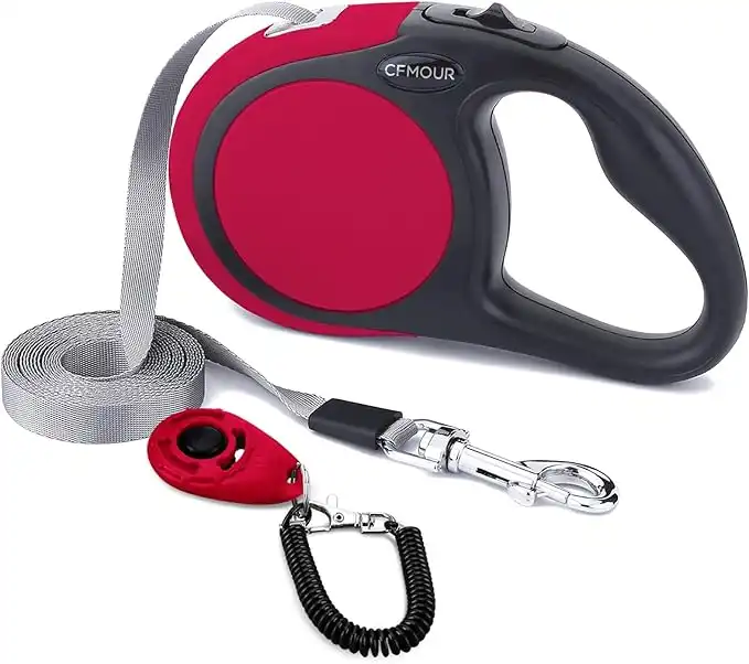 amazon.aeCFMOUR Extendable Dog Lead, 5m/20kg Red Heavy-Duty Retractable Dog Leads for Small Medium Breed; Strong Anti-Bite Nylon Tape Ribbon, One-Button Brake&Lock, Bonus Training Clicker