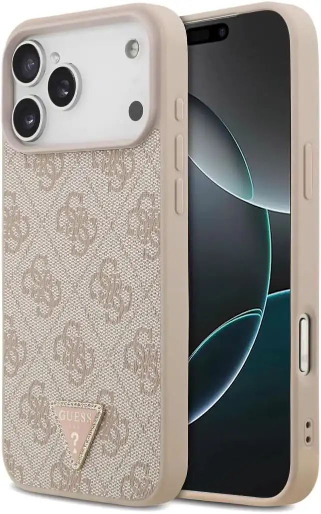 CG Mobile Guess Compatible with iPhone 17 Pro Case, 4G PU Leather Case with Triangle Logo, Compatible with MagSafe, Anti-Shock, Drop Protection, Slim & Tough - Pink