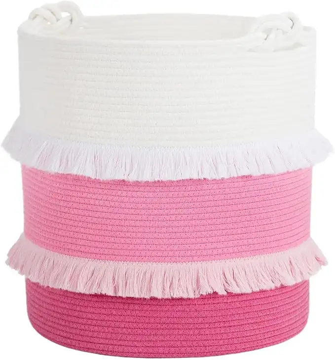 amazon.aeCherryNow (X-Large -Pink) - Extra Large Woven Storage Baskets - 41cm x 43cm Cotton Rope Decorative Pink Hamper for Nursery, Toys, Blankets, and Laundry, Cute Tassel Nursery Decor for Baby & Girl