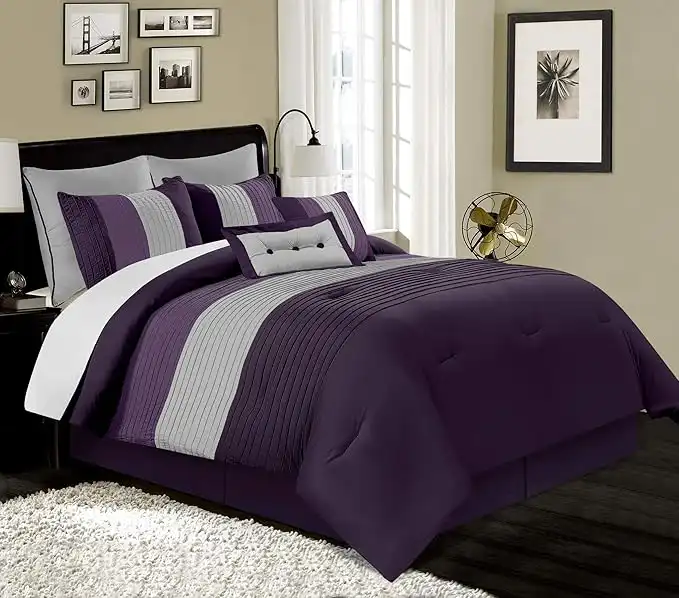 Chezmoi Collection Loft 8-Piece Luxury Striped Comforter Set (California King, Purple/Gray/Lavender) — Price History & Tracker | DeserTracker