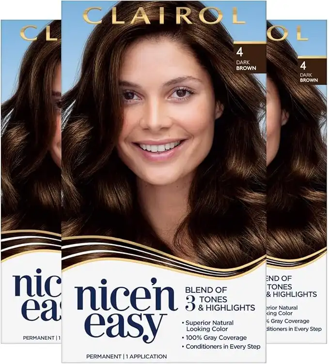Clairol Nice'n Easy Permanent Hair Dye, 4 Dark Brown Hair Color, 3 Count