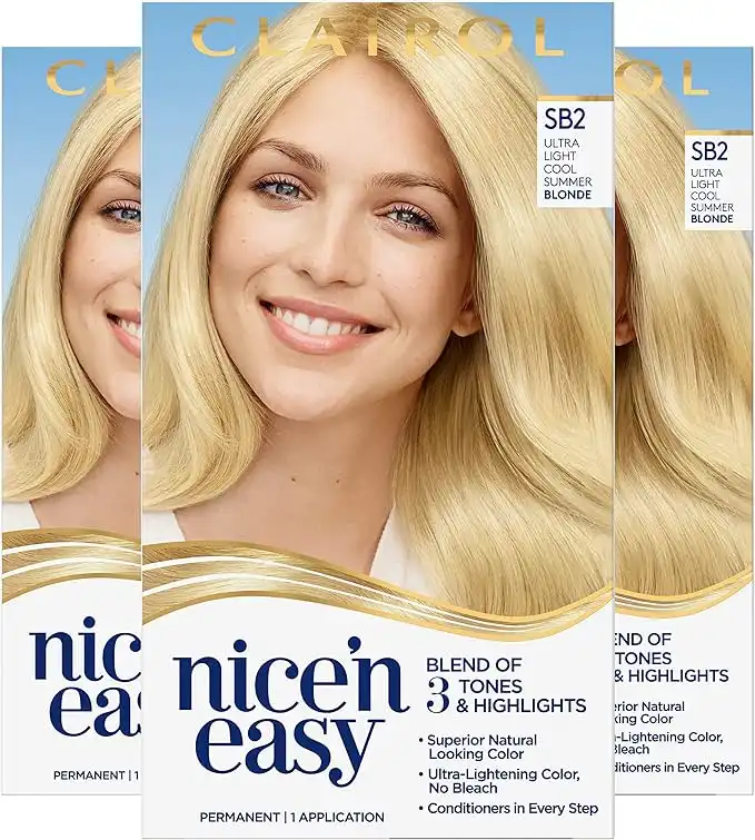Clairol Nice'n Easy Permanent Hair Dye, SB2 Ultra Light Cool Summer Blonde Hair Color, Pack of 3 — Price History & Tracker | DeserTracker