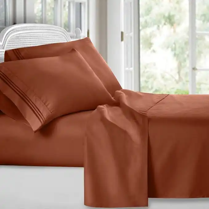 amazon.aeClara Clark Bed Sheets, Premier 1800 Series 4 Piece Bed Sheet Set, Deep Pocket, Wrinkle, Fade, Stain Resistant, Luxury Soft Bedding Sheets & Pillowcases, King, Burnt Sienna