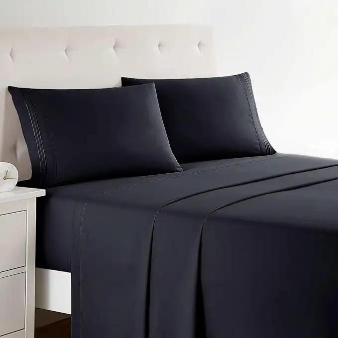 amazon.aeClara Clark Bed Sheets, Premier 1800 Series 4 Piece Bed Sheet Set, Deep Pocket, Wrinkle, Fade, Stain Resistant, Luxury Soft Bedding Sheets & Pillowcases, Full, Black