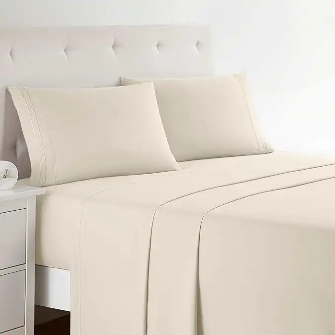 amazon.aeClara Clark Bed Sheets, Premier 1800 Series 4 Piece Bed Sheet Set, Deep Pocket, Wrinkle, Fade, Stain Resistant, Luxury Soft Bedding Sheets & Pillowcases, California King, Beige Cream