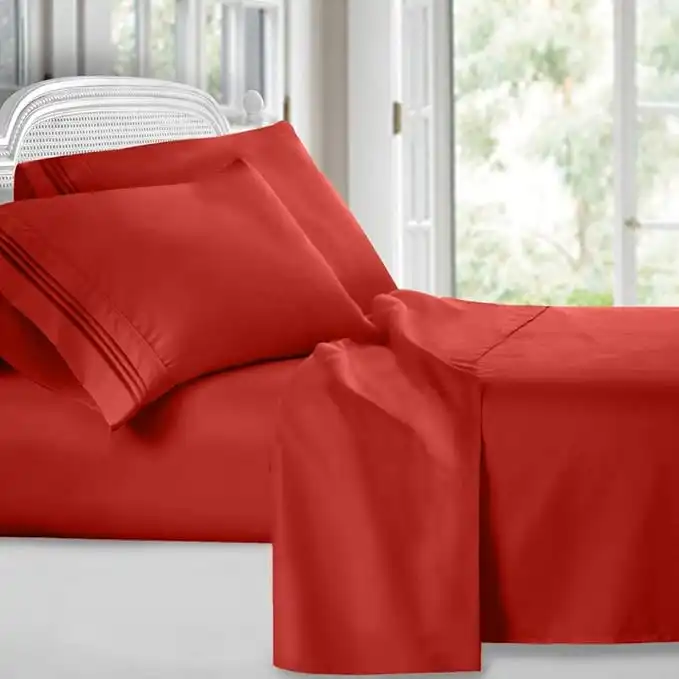 amazon.aeClara Clark California King Sheets Set, Deep Pocket Bed Sheets for Cal King Size Bed - 4 Piece Bed Sheet Set, Extra Soft Bedding Sheets & Pillowcases, Orange Sheets Cal King