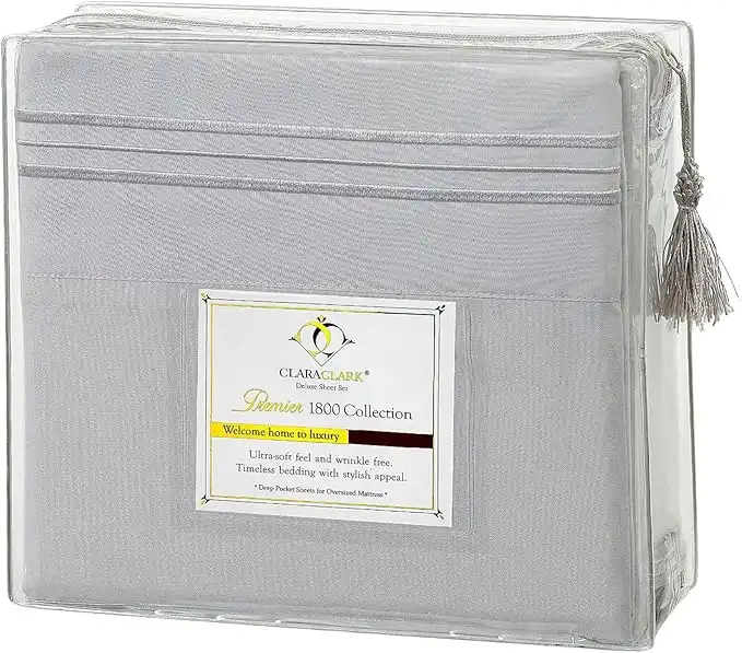 amazon.aeClara Clark California King Sheets Set, Deep Pocket Bed Sheets for Cal King Size Bed - 4 Piece Bed Sheet Set, Extra Soft Bedding Sheets & Pillowcases, Silver Gray Sheets Cal King