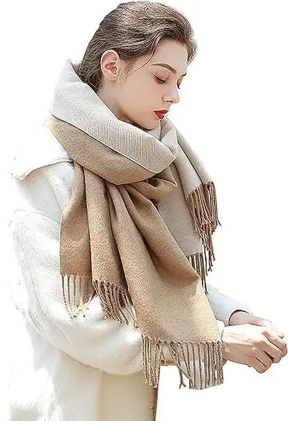 Classic Cashmere Blend Winter Scarf, Two-Tone Beige and Cream, Long Fringed Design, Warm Soft Wrap for Women — Price History & Tracker | DeserTracker