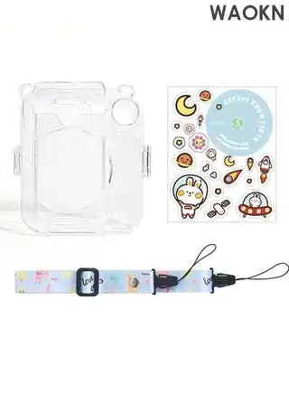 noon.comClear Camera Case Compatible with Fujifilm Instax Mini 12 Instant Camera, ,photo bag protective case,Mini 12 Hard Case with Photo Pocket Holds on Back and Adjustable Shoulder Strap & Cute Camera Sticker (blue).