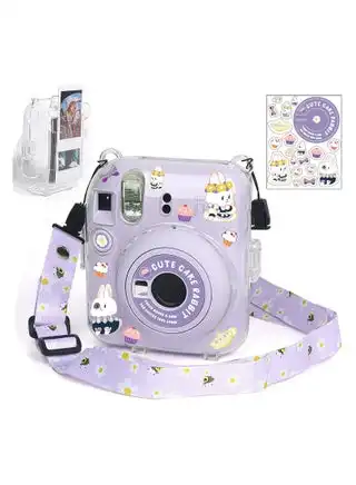 Clear Case Storage Case Compatible with Fujifilm Instax Mini 12 Instant Camera Accessories with Films Pocket Photo Holder,Sticker Decal and Adjustable Shoulder Strap