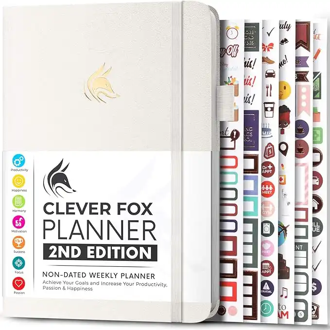 amazon.aeClever Fox Planner 2nd Edition – Colorful Weekly & Monthly Goal Setting Planner, Habit Trackers, Time Management and Productivity Organizer, Gratitude Journal, Undated, A5, Lasts 1 Year – White
