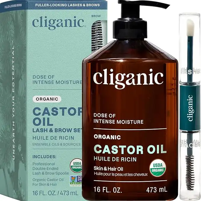 amazon.aeCliganic (473ml) - USDA Organic Castor Oil, 100% Pure (473ml with Eyelash Kit) - For Eyelashes, Eyebrows, Hair & Skin Bulk, Natural Cold Pressed Unrefined Hexane-Free DIY Carrier Oil