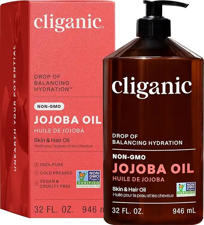 Cliganic Jojoba Oil Non-GMO, Bulk 32oz | 100% Pure, Natural Cold Pressed Unrefined Hexane Free Oil for Hair & Face, 960 ml (Pack of 1), 32.0 fl oz (CL-BE-001-32) — Price History & Tracker | DeserTracker