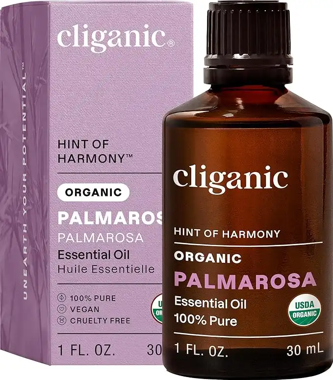 Cliganic USDA Organic Palmarosa Essential Oil, 1oz - 100% Pure Natural Undiluted for Aromatherapy | Non-GMO