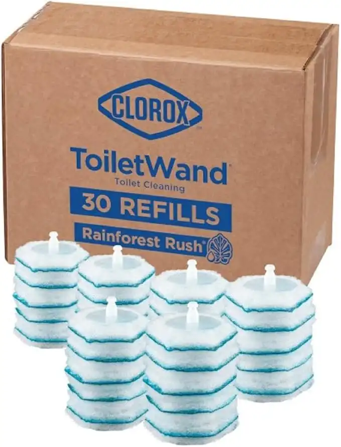 Clorox Toilet Wand Disinfecting Refills, Toilet and Bathroom Cleaning, Toilet Brush Heads, Disposable Wand Heads, Rainforest Rush, 30 Count
