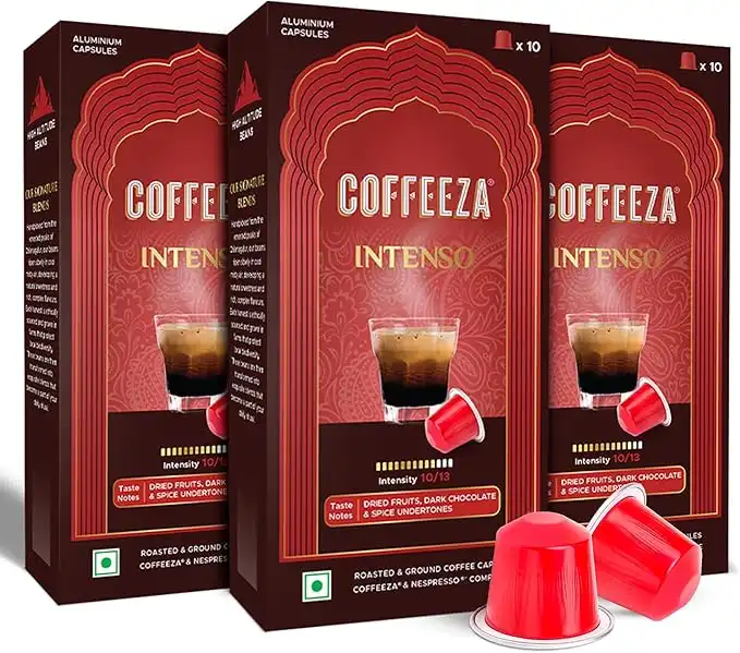 COFFEEZA Intenso Aluminium Capsules, Intensity 10, Nespresso Compatible Pods Box Of 3 (30 Capsules)