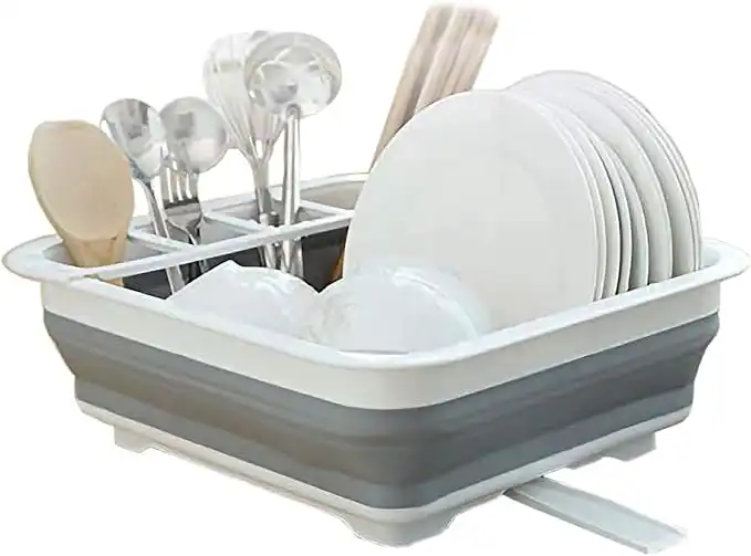 Collapsible Dish Drying Rack Portable Drainer Dinnerware Kitchen RV Campers Travel Trailer Storage Tray Plastic