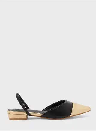 Colour Block Strap Pointed Flat Shoe