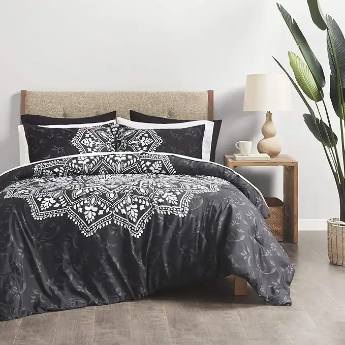 Comfort Spaces Bed in A Bag - Trendy Casual Design Cozy Comforter with Complete Sheet Set with Side Pocket, All Season Cover, Matching Shams, Queen(90"x90"), Ava Medallion Black 9 Piece — Price History & Tracker | DeserTracker