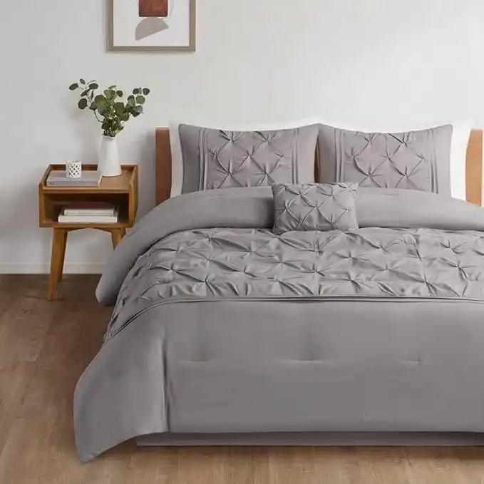 Comfort Spaces Cavoy Comforter Set - Luxe Diamond Tufting, All Season Bedding, Matching Bed Skirt, Decorative Pillows, Queen, Faux Silk Gray 5 Piece — Price History & Tracker | DeserTracker