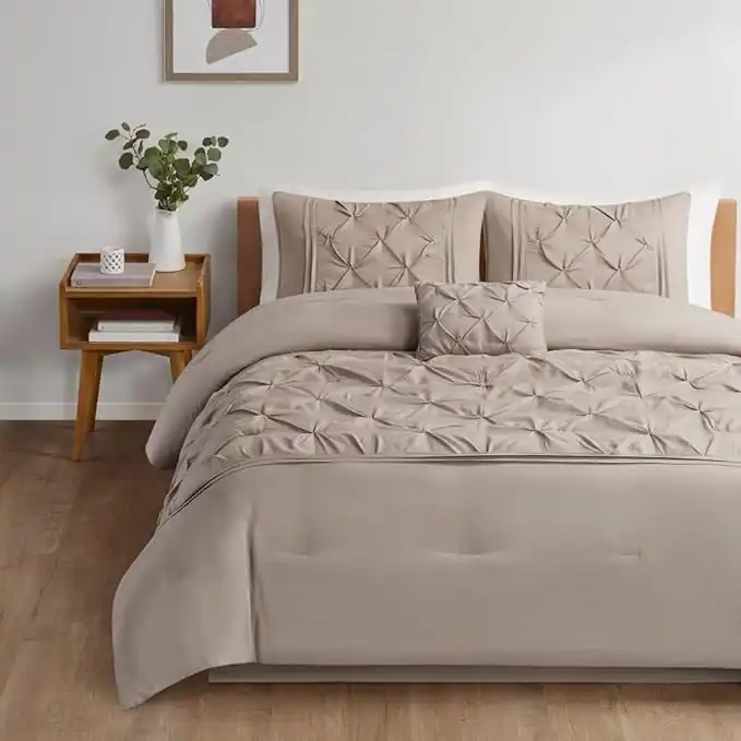 Comfort Spaces Cavoy Faux Silk Comforter Set - Luxe Diamond Tufting All Season, Matching Bed Skirt, Decorative Pillows, King(104"x90"), Taupe — Price History & Tracker | DeserTracker