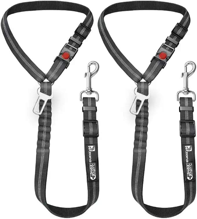 amazon.aeComfortable Dog Seat Belt Harness for Car - 2-in-1 Leash and Restraint Secures to Headrest. Adjustable Bungee, Strong, Durable, 360 Degree Swivel Attach Won't Twist, Reflective, Easy to Use (Black)