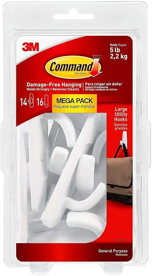 Command Large Utility Hook Mega Pack, White, 14-Hooks, 16-Strips, Organize Damage-Free Improved Version (14-Hooks)