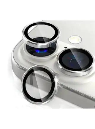 noon.comCompatible for iPhone 16/iPhone 16 Plus Camera Lens Protector, One-Step Installation Tray Individual Metal Ring Tempered Glass Cover CD Pattern Case Friendly - Silver
