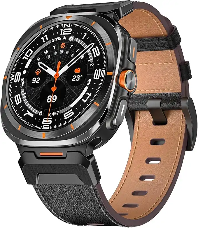 Compatible with Samsung Galaxy Watch Ultra Band 47mm Leather Replacement Watch Straps for Galaxy Ultra with Stainless Steel Connectors Women Men